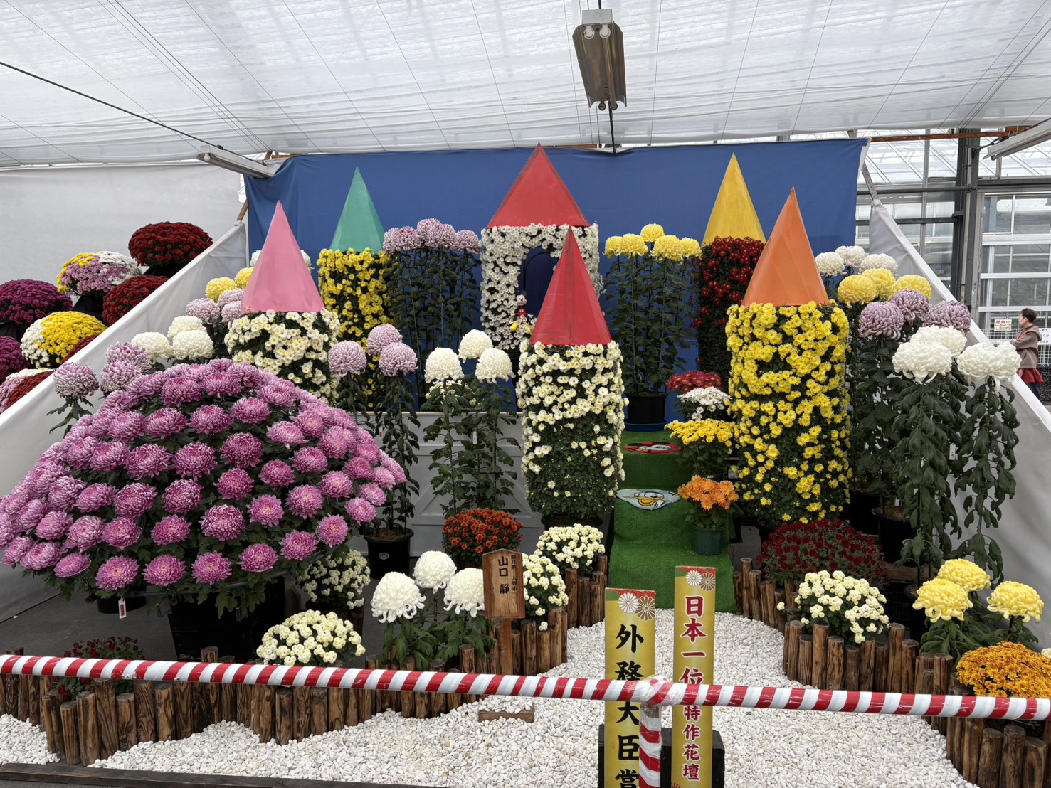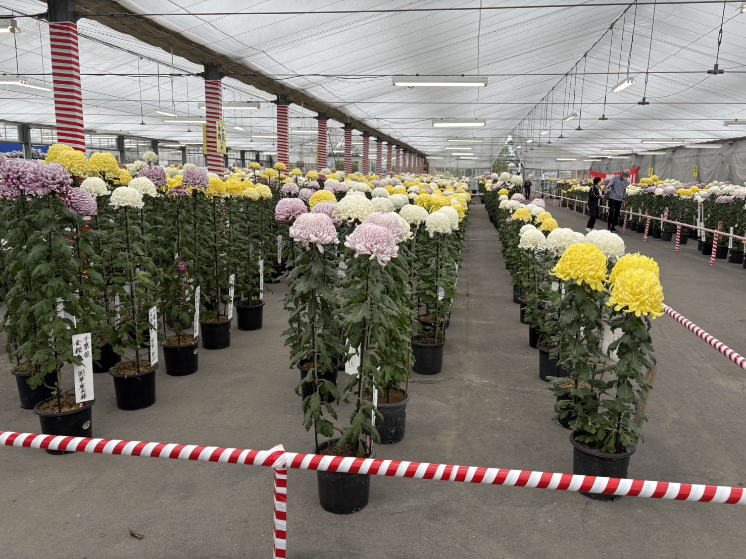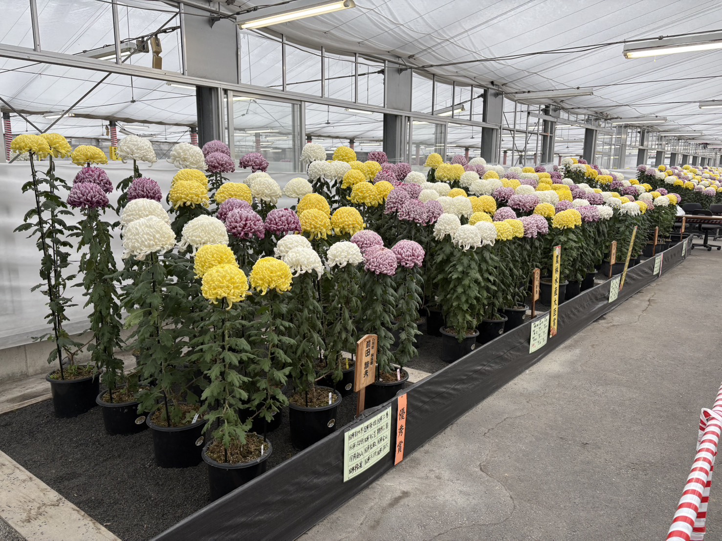 国華園二色浜店では第42回日本菊花全国大会が開催されています。 期間は10月20日~11月23日です。 11月13日に花を買いに行く予定がありましたので、開催期間に合わせて行きました。 10回以上も行っているので、最初の頃の感動よりもここまで育てる努力にいつも感心します。 3年ほど大菊を育てたことがありますが、手間がかかりすぎるのでやめました。 品種を見ると国華○○が多いのは当然と言えば当然です。