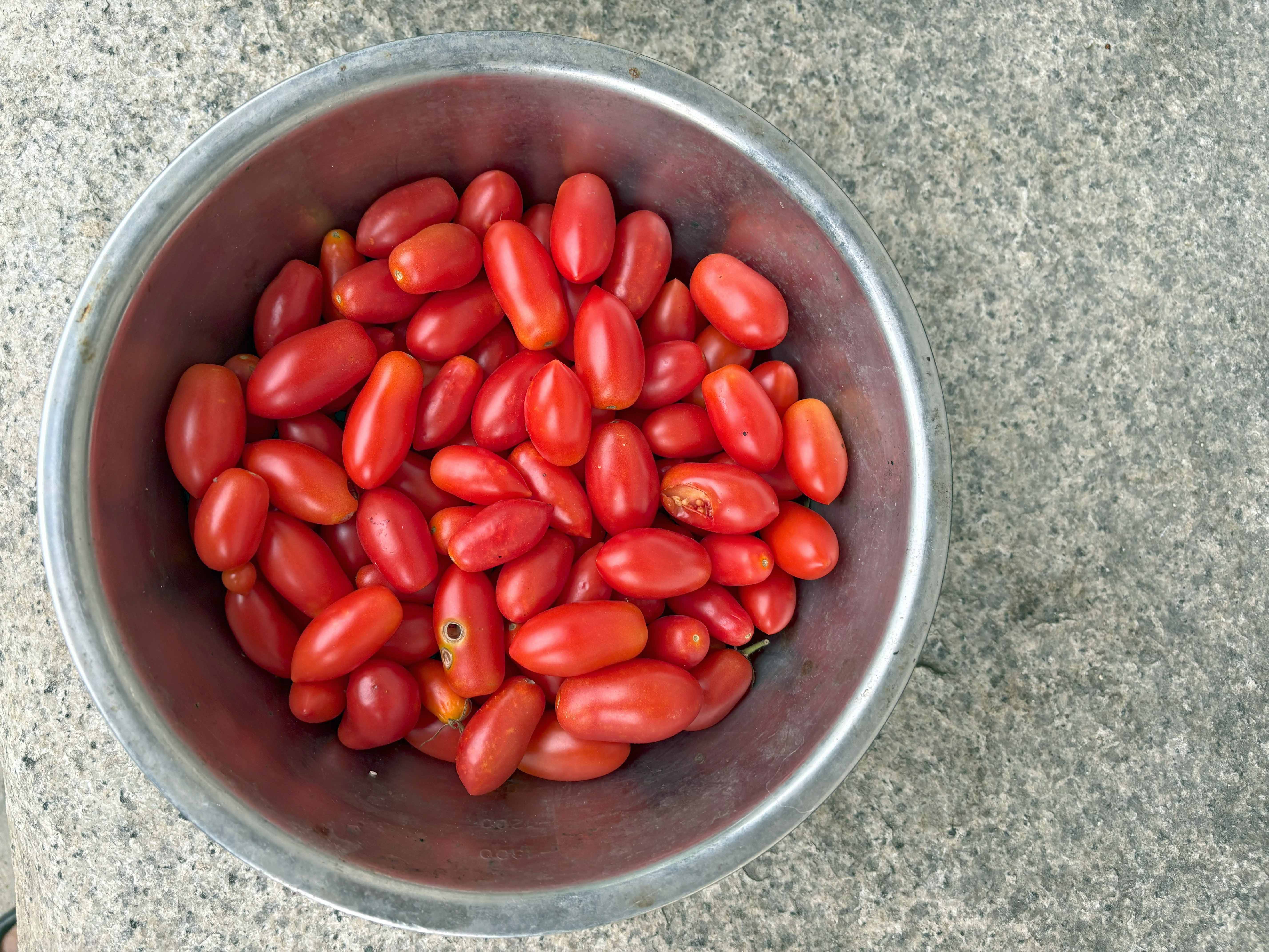 水不足でシワシワになっていたナスを水に浸けて置いたら復活しました。 ナスの水分量は約93.2g/100g(生の可食部)です。 ゆでた場合でも約94.0g/100gで加熱しても水分量はほぼ同等です。 さて、食べてどうかが問題になります。 味噌炒めにして食べましたが、少しパサパサとした感じで、さくっとした感じまではいきませんでした。 しかし、漬物でなければ問題なく食べられます。 苗から植えたミニトマトは収穫を終えていますが、種から植えたたミニトマトは今が最盛期になっています。 これは「アイコ」という品種で2004年にサカタのタネから発売されました。 今では珍しくありませんが、人気はあります。